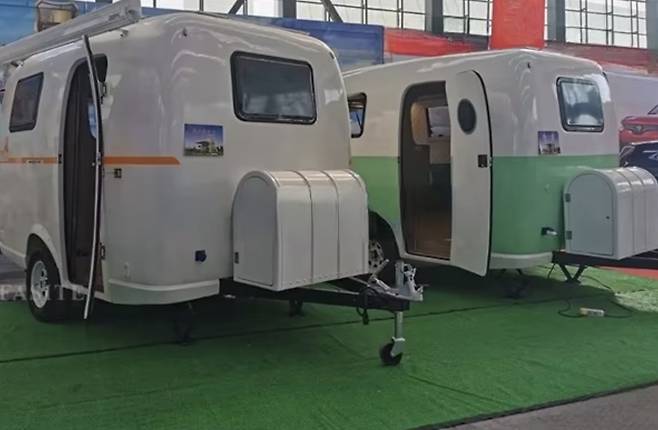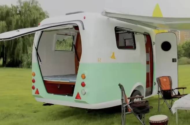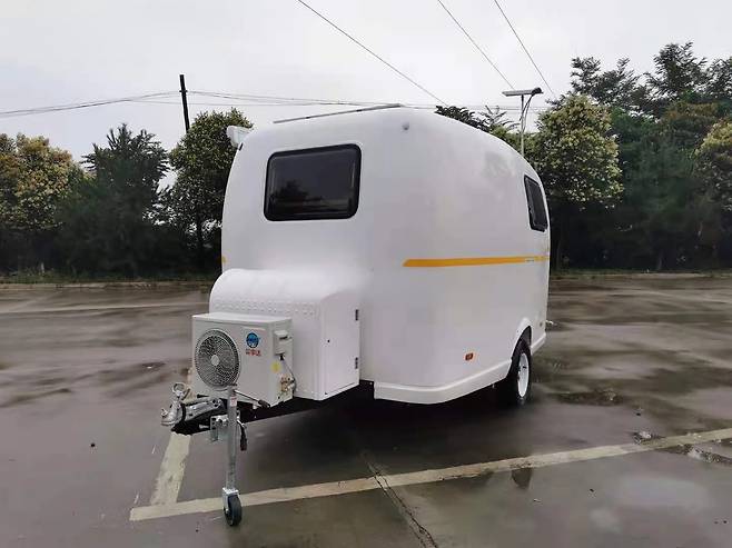 이 캠핑카는 중국 창사 뉴지 전자상거래에서 제작한 소형 트레일러형 모델로 FRP(섬유 강화 플라스틱) 소재의 외벽을 사용해 가볍고 내구성이 뛰어난 것이 특징이다.