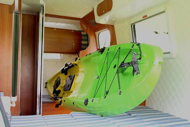 이 캠핑카의 가장 독특한 점은 후면에 대형 해치 도어를 적용했다는 것이다. 이를 활용하면 내부에서 바깥 풍경을 감상할 수 있을 뿐만 아니라, 자전거·카약·캠핑 장비 등 부피가 큰 물건을 실을 수도 있다. 일반적인 측면 출입문도 있어 동선 활용이 자유로운 편이다.