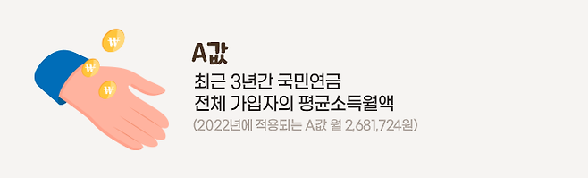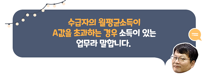 ‘소득이 있는 업무’란 노령연금 수급자의 월평균소득이 국민연금의 ‘A값’을 초과하는 경우를 말합니다. 이때 A값은 최근 3년간 국민연금 전체 가입자의 평균소득월액(2022년 A값 = 월 2,681,724원, 매 해 변동)을 말합니다.