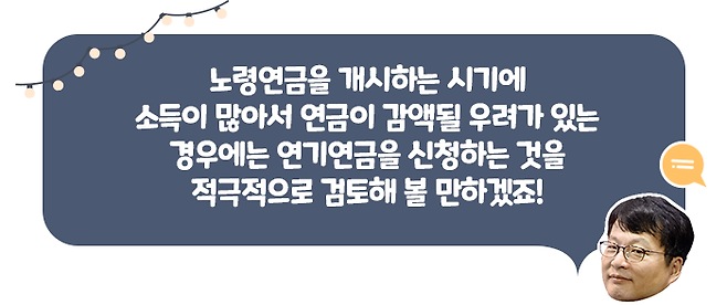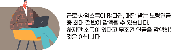 하지만 소득이 있다고 무조건 연금을 감액하는 것은 아니므로 지레 겁먹을 필요는 없습니다. 소득이 일정 규모 이상일 때만 감액합니다. 그리고 연금 수령 기간 내내 연금을 감액하는 것도 아닙니다.