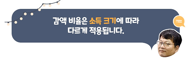 A값을 초과한 소득이 월 100만 원 미만인 경우에는 초과 소득의 5%, 100만 원 이상 200만 원 미만이면 10%, 200만 원 이상 300만 원 미만이면 15%, 300만 원 이상 400만 원 미만이면 20%, 400만 원 이상이면 초과 소득의 25%를 감액합니다.