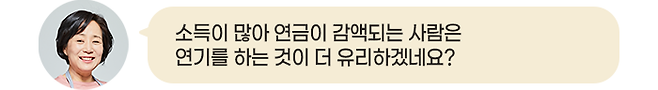 고령의 어르신들이 연금을 받으면서도 일자리를 찾아 나선 것은 연금만으로 생활하기가 빠듯해서일 겁니다. 그런데 소득이 있다고 연금을 감액한다면 황당하고 억울할 수 있죠.