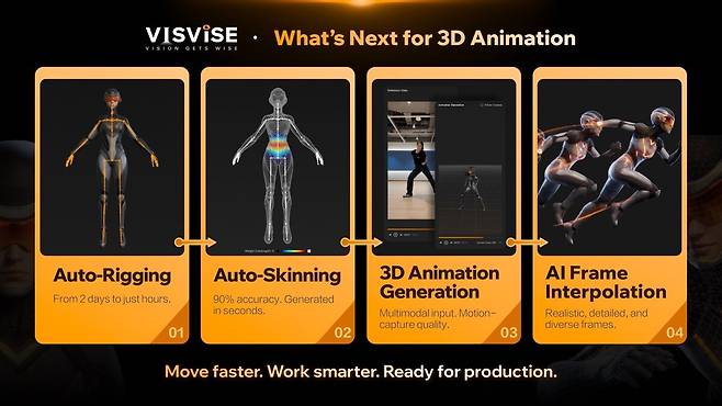 비스바이스는 올해 초 ‘게임스컴 2025(Gamescom 2025)’에서 처음 대중에 소개되었으며, 애니메이션 제작 과정 중 준비 단계를 간소화하는 자동화 기술로 큰 주목을 받은 바 있다. 이번 ‘시그래프 아시아 2025’에서는 3D 캐릭터 애니메이션 제작의 전 과정을 아우르는 완전한 통합 AI 솔루션을 선보여 한 단계 진화된 기술력을 입증했다.