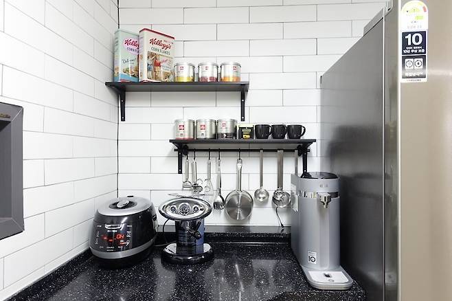 바로 저기 선반이 놓인 곳이 제 홈카페에요.
