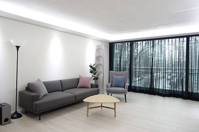 전체를 화이트로 가고 가구와 커튼/블라인드, 소품 등으로 포인트를 두는 게 훨씬 쉽겠더라고요.