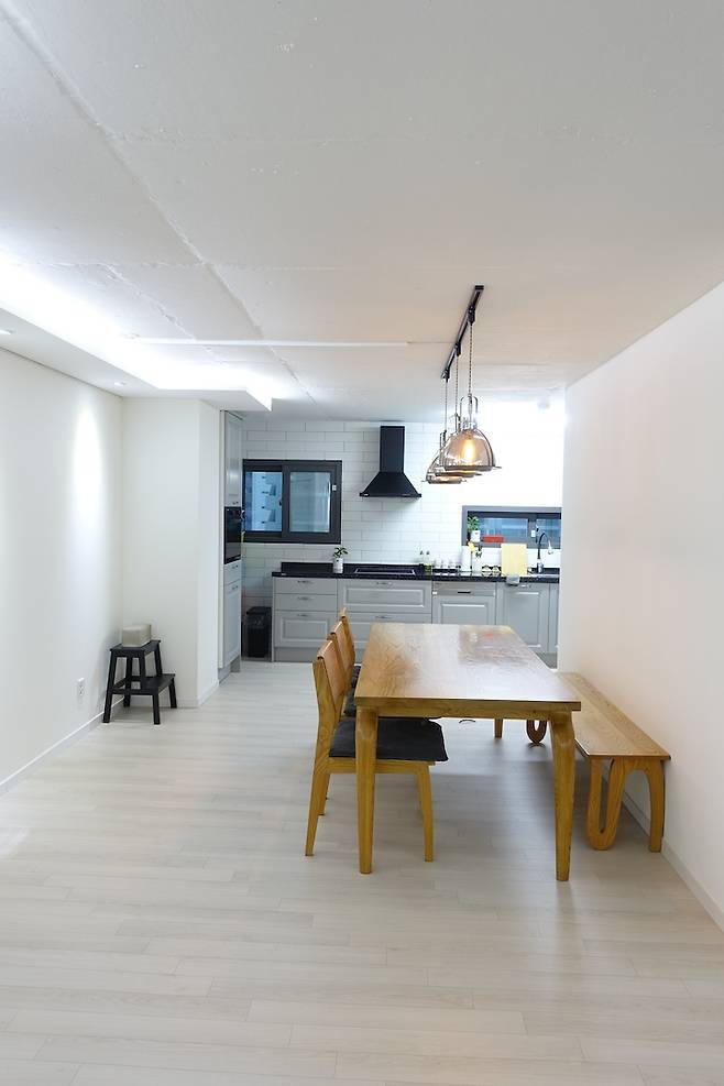 모든 과정이 비전문가인 제게는 신기한 일이었습니다. 특히, 간접 조명을 위한 목공(시사시)과 배선 작업부터 도장, 조명 설치까지 그 일련의 과정을 거치면서 변화되는 집이 참으로 놀라웠어요.