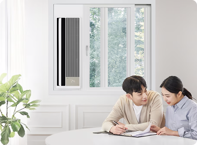 듀얼 인버터 기술을 적용해 시원함을 올리고 전기료는 낮춘 LG전자 창문형 에어컨이다. LG ThinQ 앱을 통해 에어컨 절전 모드를 선택하고 하루 사용량을 직접 조절하여 세밀하고 스마트한 절전 플랜을 세울 수 있다. 절전 모드와 34dB 저소음 모드에서 각각 2단계로 풍량을 설정할 수 있다는 것도 장점.