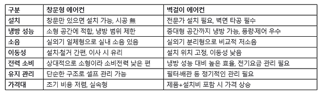 창문형 에어컨 vs 벽걸이형 에어컨, 차이점은?