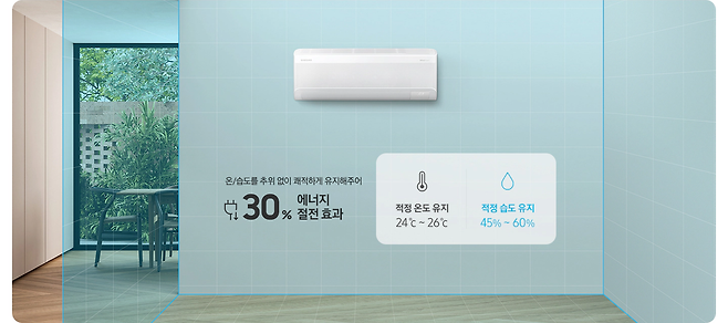 온도부터 습도까지 알아서 다 맞춰주는 삼성전자의 2025년형 AI 무풍콤보 벽걸이 에어컨이다. 직바람 없는 무풍 냉방으로 실내 온도를 과도하게 낮추지 않고 실내 공간을 시원하게 만들어주며, 섬세한 냉매 기술을 활용한 쾌적 제습 기능을 통해 최소한의 에너지로 효율적인 습도 조절이 가능하다. 너무 춥지 않으면서 균일하고 쾌적한 실내 환경을 유지할 수 있어 노인이나 아기가 있는 가정에 특히 추천한다. 사용자의 생활 패턴을 학습해 냉방 모드를 조절하고 에너지를 체계적으로 관리해주는 AI 기술도 적용되었다.