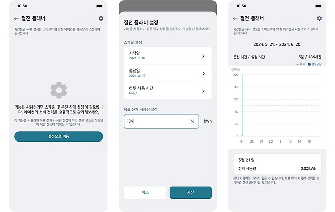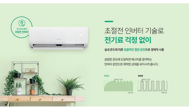 강력한 직접 냉방과 은은한 간접 냉방을 통해 더위를 빠르게 식혀주고 쾌적함을 오래 지켜주는 LG전자의 벽걸이형 에어컨이다. 주변 환경과 사용 패턴에 맞춰 풍량을 조절하는 스마트 케어 기능이 포함되어 있으며, 극세 필터와 AI 건조 기능으로 더욱 깨끗한 바람을 즐길 수 있다. 창문형 에어컨과 동일하게 LG ThinQ 앱에서 하루 에어컨 사용량을 조절할 수 있고, 절전 모드도 일반 절전 모드와 파워 절전 모드를 선택할 수 있어 효율적인 전력 모니터링이 가능하다. 최대 12시간까지 취침모드 설정이 가능한 롱숙면모드도 특징적.