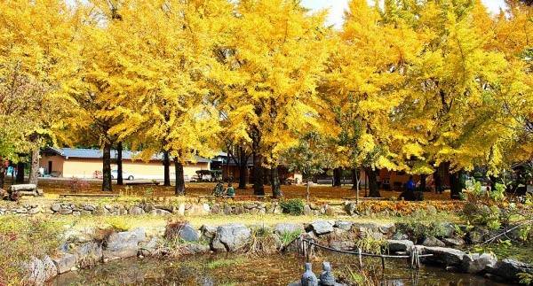 "마을 전체가 노랗게 빛난다"는 말이 과장이 아니다. 가을이 오면 이 마을은 나무 한두 그루가 아니라, 마을 전체가 황금빛으로 뒤덮인다. 약 3천여 그루의 토종 은행나무가 마을 곳곳에 심어져 있어, 골목길을 걷는 내내 은행잎이 쏟아지는 장관을 만날 수 있다. 바람이 불면 은행잎이 눈처럼 흩날리고, 발 아래엔 노란 잎이 두껍게 쌓여 마치 황금빛 카펫을 깔아놓은 듯하다.
