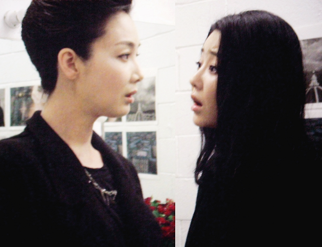 이중 시사회 도중 기자들을 숨죽이게 만든 문제적 장면이 등장했는데…바로 고현정과 최지우가 실제 상황을 방불케한 고성과 말싸움을 선보인 장면이었다. 극 중 최지우가 함께 화보 작업중인 고현정과 보이지 않는 신경전을 벌였는데, 결국 한 대기실에 최지우가 고현정을 험담하는 통화를 하다가 그 방에 있던 고현정이 바로 듣고 최지우와 말싸움을 벌이는 장면이었다.