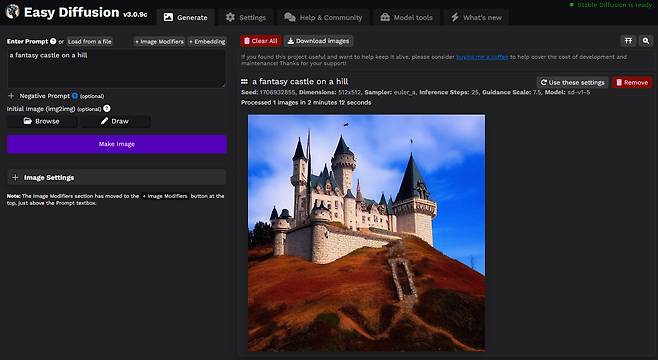 하지만 이들 애플리케이션은 설치 과정 자체가 상당한 진입장벽으로 작용한다. 특히 AUTOMATIC1111 Web UI나 ComfyUI는 설정 파일 구성, Python 환경 구축, 모델 다운로드 등 초보자에게는 다소 복잡하고 까다로운 단계를 요구하기 때문에, 일반 사용자가 쉽게 접근하기 어려운 편이다. 이를 보완하기 위해 등장한 것이 EasyDiffusion과 같은 애플리케이션이다. EasyDiffusion은 보다 범용 애플리케이션과 유사한 설치 방식을 제공해 진입장벽을 낮추고자 한다.