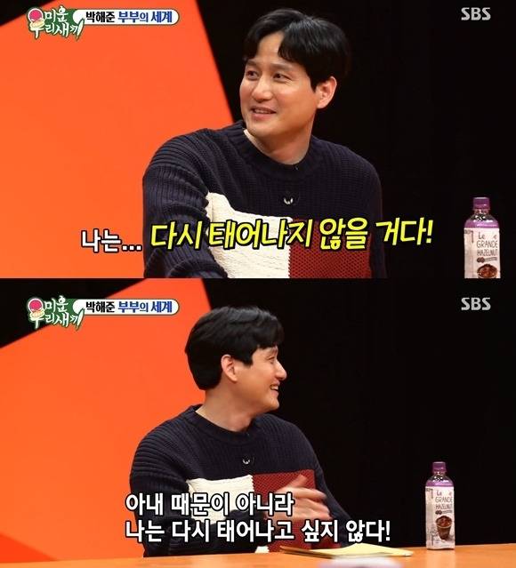 결혼 15년 차가 된 박해준은 '다시 태어나도 지금 아내와 결혼하겠느냐'는 질문에 "난 다시 태어나지 않을 거다. 아내에게도 얘기했다"고 밝혀 웃음을 안겼죠.