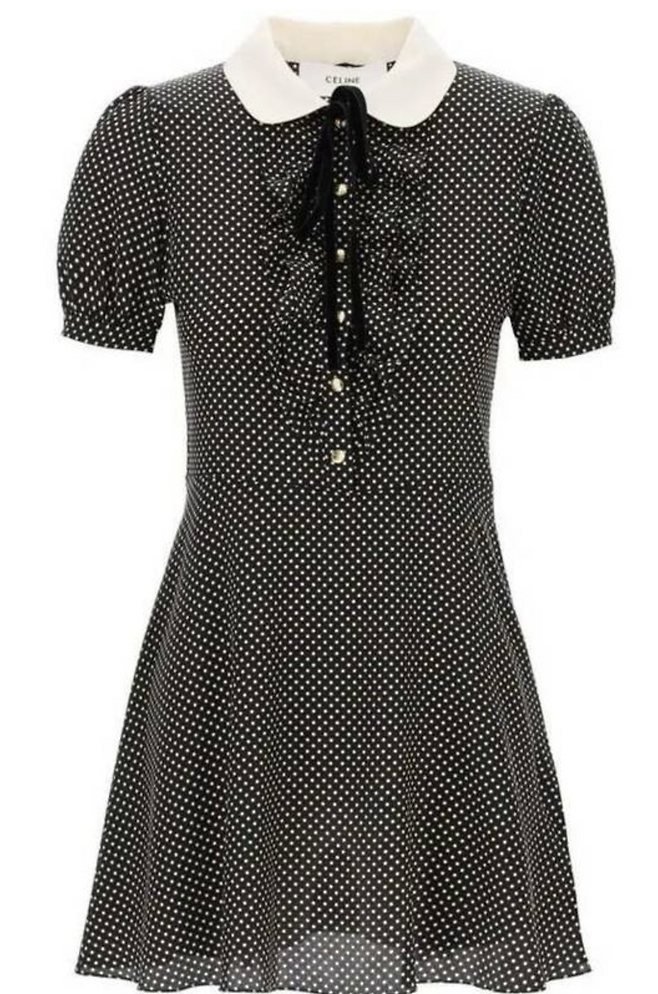 사진 속 원피스 정보 - 셀린느 MINI DRESS IN SILK실크 도트 미니 드레스