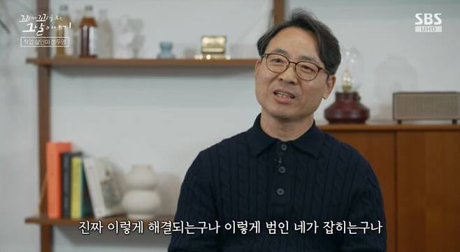 "그때 그 사진 보자마자 맞다고. 진짜 이렇게 해결되는구나. 이렇게 범인 네가 잡히는구나. 천안에서 잡혀? 이렇게 네가 잡히는구나…"