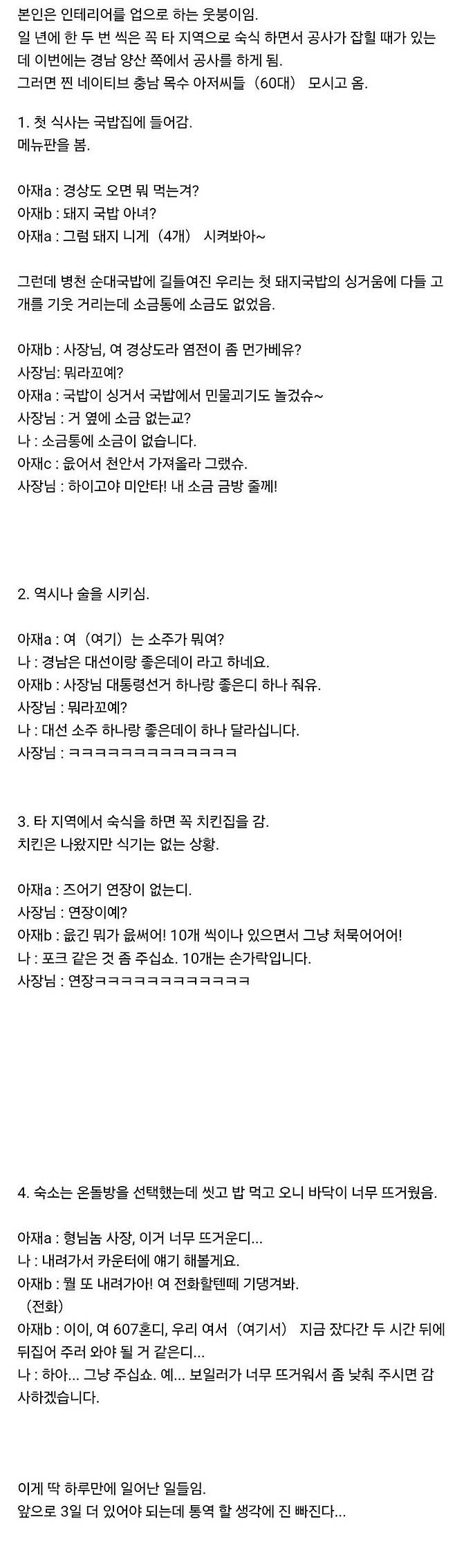 충청도 아저씨들 통역사로 고용된 썰