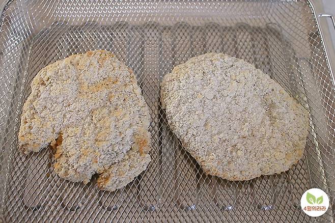 → 오븐에 돈가스를 180도 10분 + 200도 10분 구워 자른다.