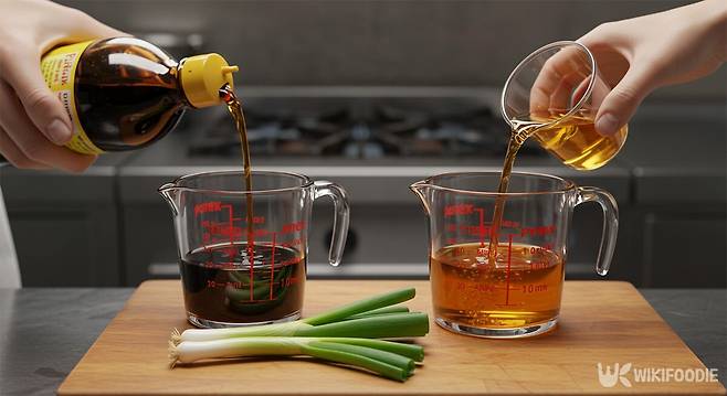4. 양조간장, 맛술, 노두유, 흑설탕 섞은 양념장을 붓는다.