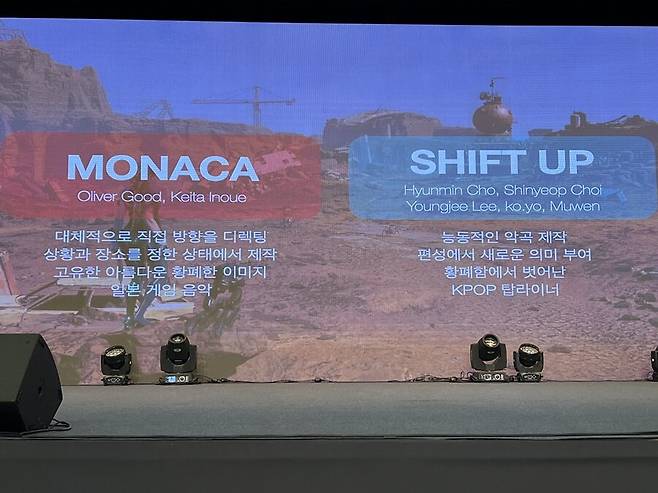 황주은 디렉터가 생각하는 '스텔라 블레이드'의 특징은 뭘까. 황주은 디렉터는 첫 번째로 그래픽적으로 대비가 강한 스타일이며, 두 번째로는 색채가 자극적이고 마지막으로 디자인과 연출에 과장된 표현이 들어간 게 특징이라고 설명했다. 이러한 3가지 특징을 기반으로 황주은 디렉터는 본격적으로 '스텔라 블레이드' 사운드 제작에 들어갔다.
