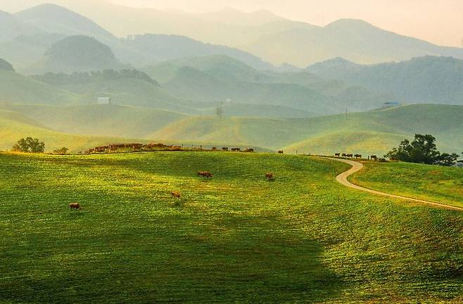 서산한우목장 웰빙산책로는 끝없이 펼쳐진 초지와 한우가 어우러진 독특한 풍경으로 주목받고 있다. 넓은 초원 위를 자유롭게 거니는 한우들과 부드러운 능선이 이어지며 마치 유럽의 알프스를 연상시키는 분위기를 만들어낸다. 도심에서는 쉽게 볼 수 없는 탁 트인 풍경 덕분에 최근 많은 여행객들이 찾고 있는 힐링 명소다.