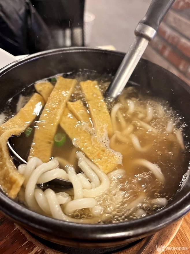 먹다보면 서비스로 뚝배기 우동이 나와 입가심 하기에 좋다. 보글보글 끓는 국물에 쫄깃한 면발과 길게 썰어넣은 어묵이 함께 나온다. 또한 묵은지 서비스 초밥도 나와 개운하게 마무리 하기에 좋다.