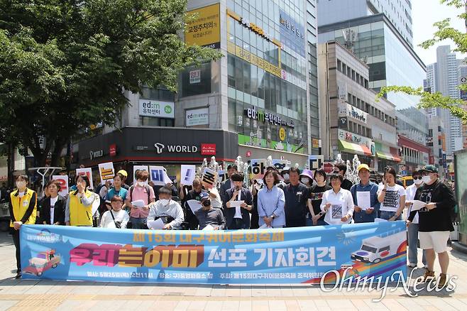 | ▲ 대구퀴어문화축제조직위는 25일 대구 중구 옛 중앙파출소 앞에서 기자회견을 열고 오는 6월 17일 제15회 퀴어문화축제를 진행한다고 밝혔다. |