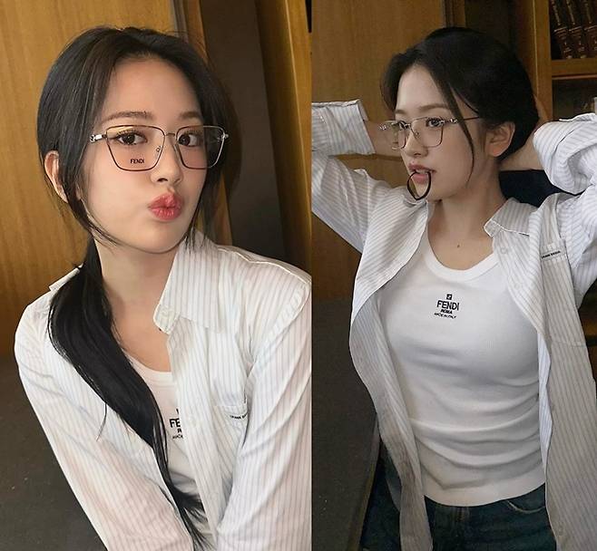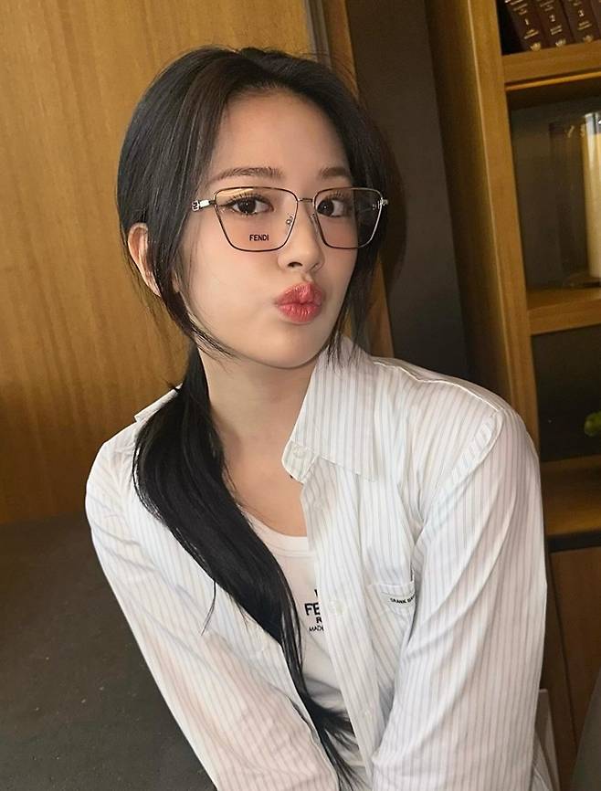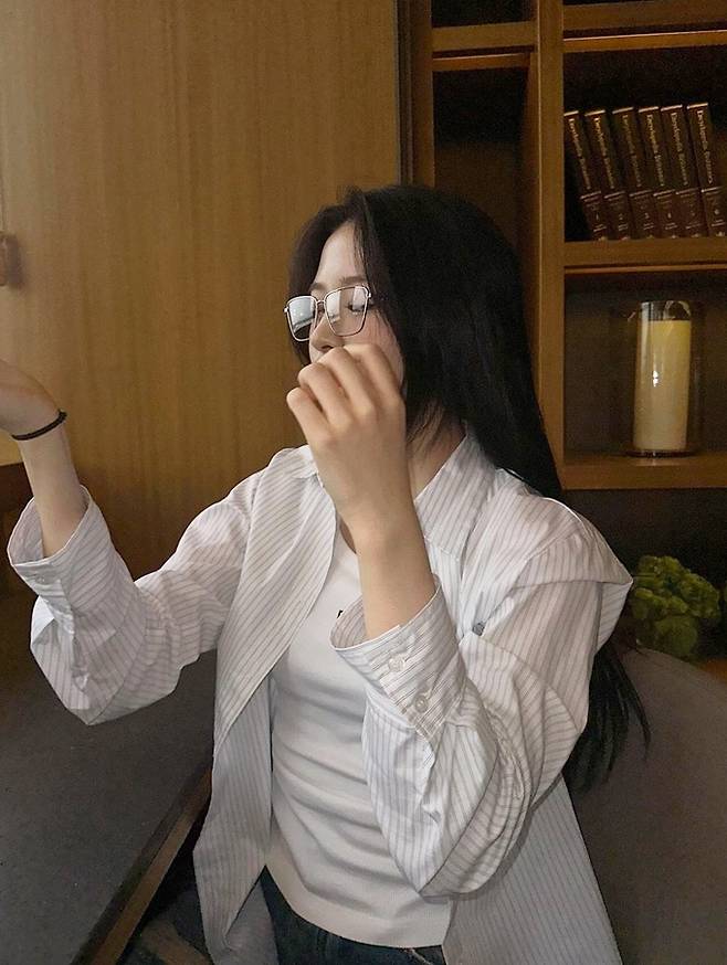 아이브의 안유진이 안경에 스트라이프 셔츠를 입고 스마트한 청순미를 발산했다.