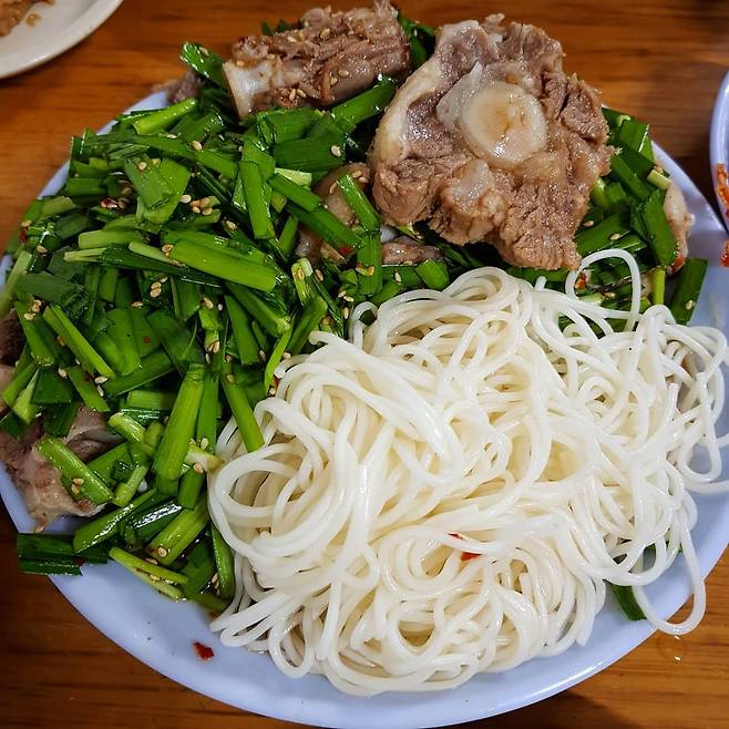 설렁탕집이지만 꼬리 수육이 더 유명한 영등포 '대한옥'. 오래된 영등포 맛집으로 늘 웨이팅이 있는 집으로도 유명하다. 야들야들하게 삶긴 소꼬리 위에 간장으로 양념된 부추가 듬뿍 올려 나오는 꼬리 수육은 감칠맛이 넘친다. 꼬리 수육을 주문하면 서비스로 주는 설렁탕 국물도 깊고 진한 맛이다. 고기를 다 먹은 후 남은 양념에 국수사리를 비벼 먹는 것이 정석이다. 설렁탕 전문점답게 깍두기도 아주 맛있는데 꼬리 수육에 곁들여 먹는다면 자칫 느끼할 수 있는 고기의 느끼함을 잡아 금방 한 접시 비우게 된다.