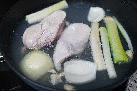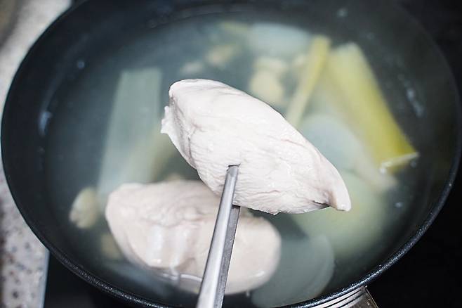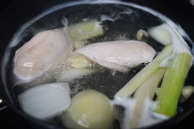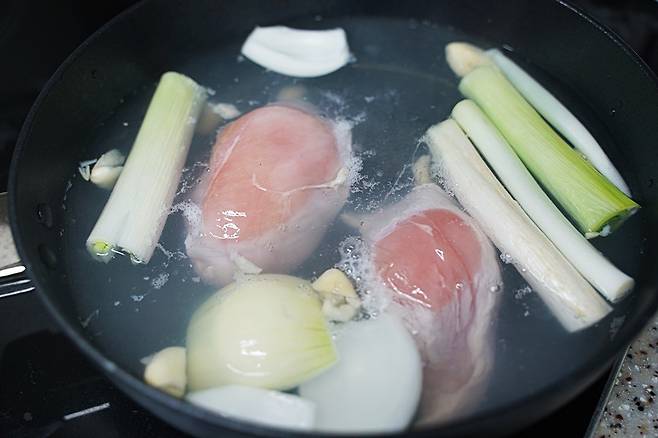 닭가슴살이 잠길 만큼 물을 넣는 것이 중요합니다.