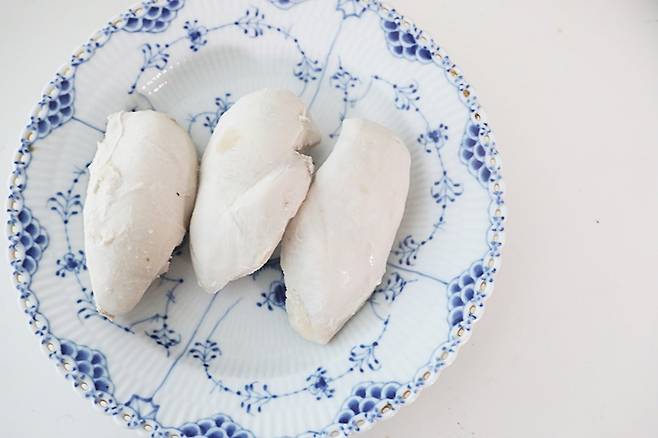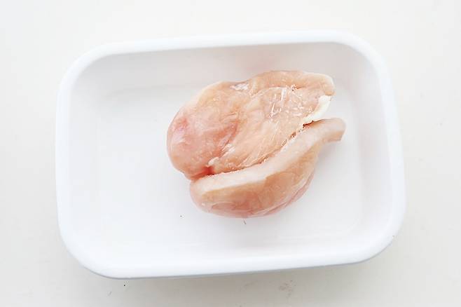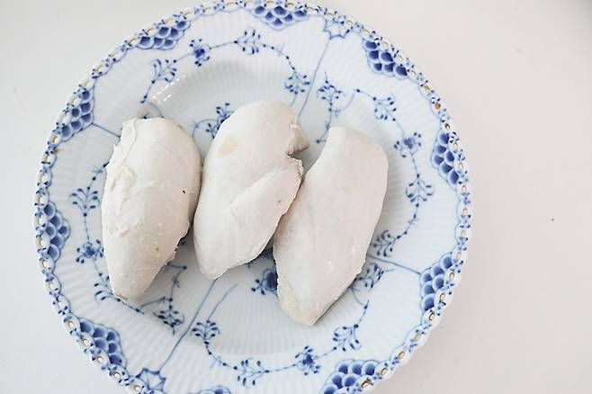 냉동 닭가슴살을 사용할 경우, 먹을 만큼 자연 해동하면 좋아요.