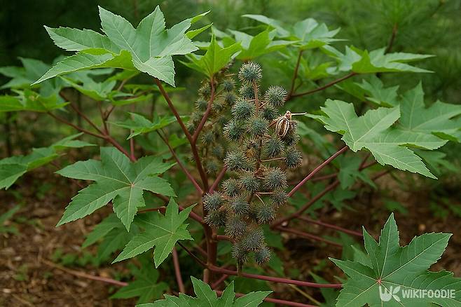 피마자 씨앗에는 리신이라는 강한 독성 단백질이 들어 있다. 매우 강한 성분이다. 성인이 씨앗 4~8개를 먹으면 심각한 중독 증상이 나타난다. 입과 목이 타는 듯한 느낌, 메스꺼움, 복통, 설사가 초기 증상이다.