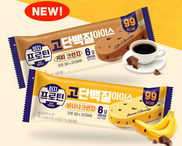 롯데웰푸드는 칼로리와 당 함량에 대한 불만을 개선하는 데 초점을 두고 개발된 브랜드 ‘이지프로틴’으로 아이스크림 제품을 출시했다. 당과 칼로리를 줄이고 단백질을 채운 바 형태의 아이스크림 ‘이지프로틴 고단백질 아이스’ 2종이다. 바나나크런치와 커피크런치의 두 가지 맛을 고를 수 있다. 단백질 함량은 6g이며, 열량은 99㎉에 불과해 부담 없이 즐길 수 있다. 공식몰 판매가는 개당 1,500원이다.