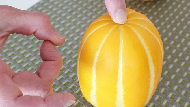 만약 참외를 손가락으로 살살 쳤을 때 묵직한 소리가 나는 것은 피하세요. 묵직한 소리가 나는 이유는 바로 참외에 물이 찼기 때문입니다. 살살 쳐봤을 때 맑은 소리가 나는 것이 잘 익고 맛있습니다.