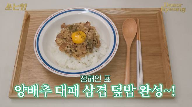 영상에서 정해인은 평소 즐겨 먹는 ‘양배추 대패 삼겹 덮밥’을 직접 요리했다.