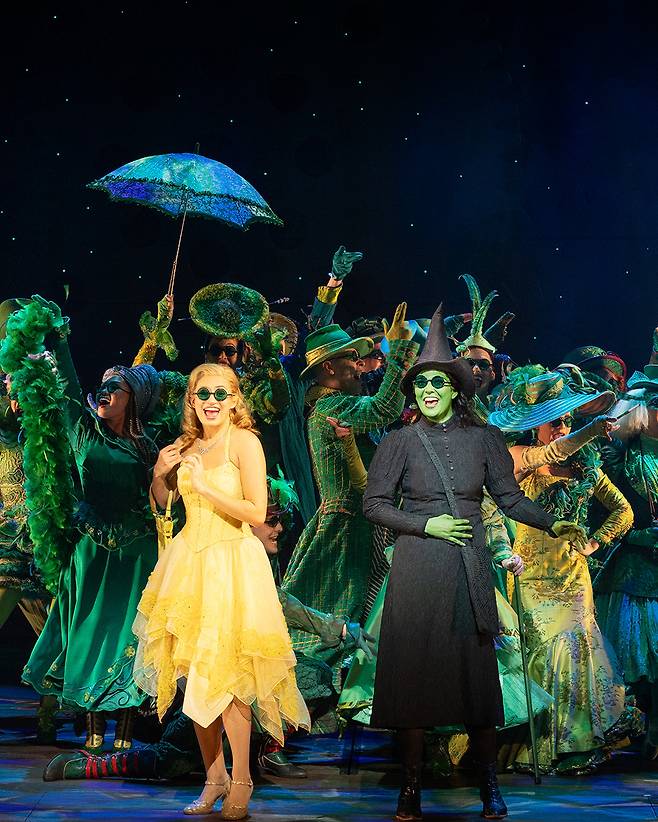 글린다 역의 코트니 몬스마와 엘파바 역의 셰리든 아담스의(첫 날 공연에는 조이 코핀저가 대신 무대에 올랐다) 재치 넘치는 케미와 탄탄한 음역, 섬세한 감정선을 뽐내며 원조다운 앙상블을 보여줬다. 글린다의 통통 튀는 매력을 발산하는 ‘Popular’를 비롯해 글린다와 엘파바의 우정을 확인시켜 주는 ‘For Good’, 엘파바의 ‘Defying Gravity’ 등 명곡이 흘러나오며 온몸에 전율을 일으켰다.