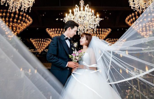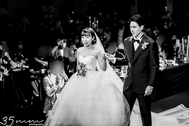 코미디언 오나미의 웨딩화보속 웨딩룩이 공개되었다.