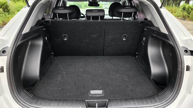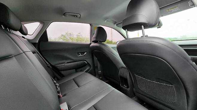 2세대 코나의 장점은 넓어진 2열 공간이다. 전장은 2세대 소형 SUV 치고 여전히 짧은 편이지만, 비교 상대들이 너무 과하게 커진 느낌도 있다. 체감상 2열 공간은 10년 전 준중형 SUV 만큼 넓어졌다고 본다. 에어벤트와 암 레스트, 열선 시트 등은 옵션을 추가해야 하며, USB 포트만 구비되어 있다. 그나마 암레스트 에어벤트 자리에 패턴을 새겨서 시각적인 부분은 보완해 주었다. 트렁크도 이전 세대에 비해 훨씬 넓어졌다. 무 옵션 차량이라도 시트 폴딩은 지원해 준다. 트렁크 매트 아래에는 잔여 공간이 휑하게 남아있다.
