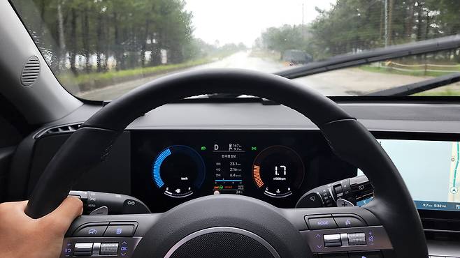 스포츠 모드로 변경하면 엔진 떨림이 확실하게 유입된다. 사운드도 증폭된다. 최대출력 198마력, 최대토크 27.0KG.M을 발휘하는 1.6 가솔린 터보 엔진은 약 1.4톤의 차체를 가볍게 이끈다. 측정 제로백은 7초 중반, 체감보다 오히려 느린 수치다. 전반적인 주행감이 가벼운 느낌이라 출력을 곧이곧대로 활용하기엔 위험성이 느껴질 정도였다. 비가 내리는 날씨였으니 당연한 부분이기도 한데, 엔트리 모델에만 탑재되는 17인치 휠이 가벼운 느낌을 더해주지 않았을까 싶기도 하다. 안정감을 살리려면 승차감은 조금 더 딱딱해져도 좋을 듯했다.