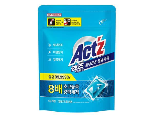 피죤은 ‘액츠 퍼펙트 캡슐세제’ 라인으로 실내 건조 제품을 새로이 출시했다. 기존 자사 제품 대비 8배의 초고농축 캡슐세제다. 섬유 속 유해균을 99.999% 살균할 수 있으며, 세탁 중 옷감에서 빠진 염료가 다른 섬유로 흡착되는 것을 방지한다. 악취 원인을 제거하는 효소를 첨가했으며, 형광증백제, MIT, CMIT 등 11가지 유해 물질들을 배제한 원료로 만들었다. 공식몰에서 캡슐 15개가 든 패키지 하나를 3,900원의 판매가로 판매하고 있다.