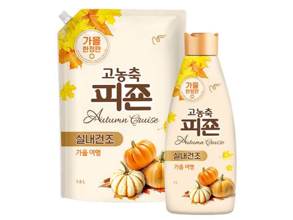 피죤은 시즌 한정 제품으로 섬유유연제 ‘고농축 피죤 가을 여행’을 출시했다. 신제품은 베스트셀러인 고농축 피죤에 톱 노트로 그린과 프루츠를, 미들 노트로 라일락과 재스민을, 베이스 노트로 머스크, 우디를 적용해 상큼하면서도 포근한 향기를 구현했다. 자사 일반 섬유유연제 대비 향기를 4배 강화했으며, 불필요한 화학 성분인 증점제, 미세 플라스틱, 방부제, 색소가 첨가되지 않았다. 1.6리터 제품 2팩을 공식몰에서 12,900원의 판매가로 판매 중이다.
