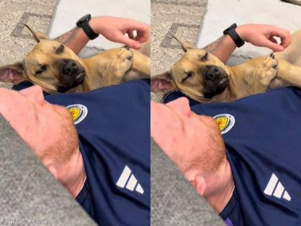 이들은 "너무나 소중하네요", "정말 달콤하군요. 남자친구를 안전하다고 느끼나봐요", "개가 사랑에 빠졌네요" 등의 반응을 보였다.