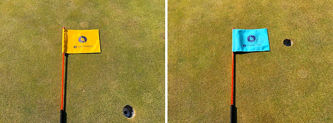 서원밸리 cc는 앞핀 빨간색, 중핀 노란색, 백핀을 파란색으로 구분 지어 놨습니다.