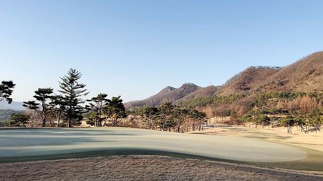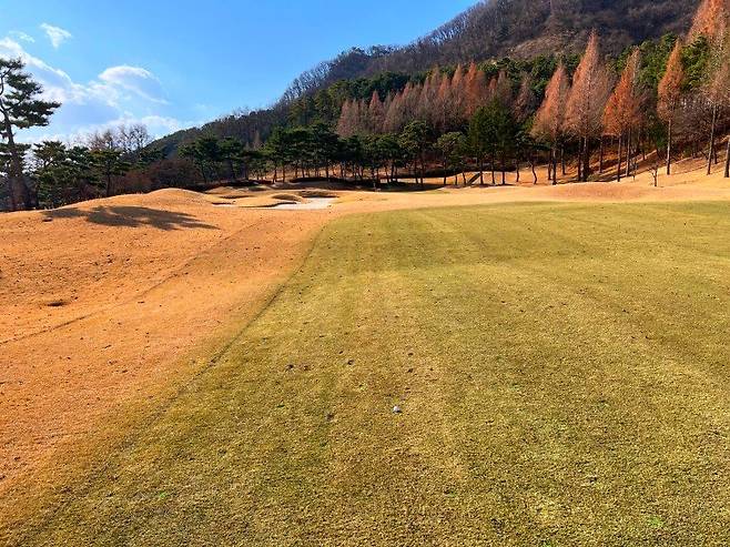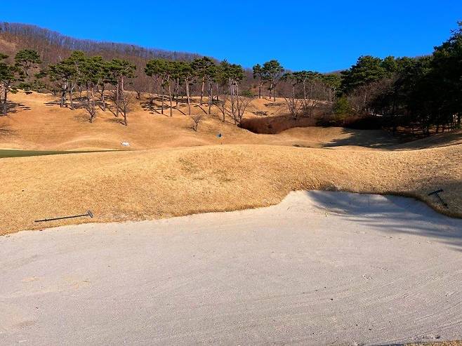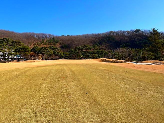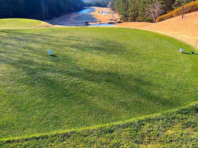 러프 역시 페어웨이와 마찬가지인 조선 잔디로 A 러프의 길이가 30-40mm 정도, B 러프는 40-50mm로 생각하시면 될 것 같습니다. 주요 랜딩 지점에는 페어웨이와 마찬가지로 디봇 자국이 많이 안 보이는 편이고 전체적으로 관리 상태가 좋았습니다. 겨울임에도 제가 개인적으로 매우 좋아하는 페어웨이, A 러프, B 러프 명확히 구분 지어 사용 중입니다.
