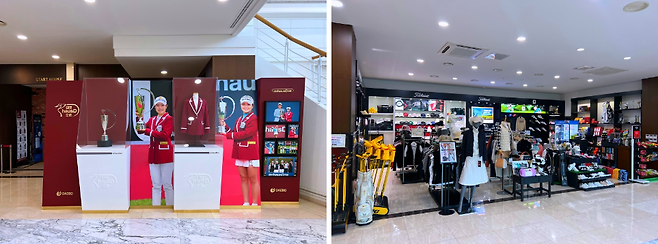 여자 라커룸은 리셉션과 동일한 층에, 남자 라커룸은 리셉션에서 한층 내려오면 준비되어 있습니다. 한층 밑에는 프로샵과 21년, 22년 KLPGA 대보하우스디 오픈 우승자인 박민지 프로와 송강은 프로 사진이 전시되어 있습니다.