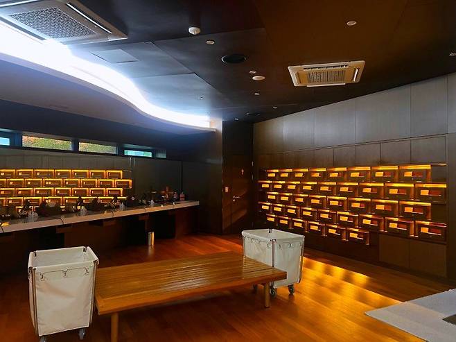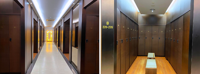 라커룸은 리셉션 공간과 다르게 어두운 우드톤인데 널찍해서 좋았습니다. 공간이 여유로워 다른 사람과의 간섭이 거의 없는 편입니다.