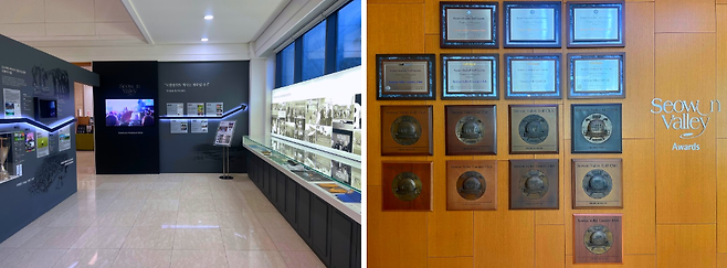 리셉션과 같은 층에 있는 대식당 바로 옆에는 서원밸리 cc의 연혁과 수상내역이 걸려있습니다. 앞서 말씀드렸듯 골프다이제스트 베스트 코스 8회 연속 선정, 친환경 베스트 골프장 8회 연속 선정, 골프매거진 한국 10대 코스 9회 연속 선정 등 개장 이후 꾸준히 대한민국 TOP10 코스에 뽑히는 구장입니다.