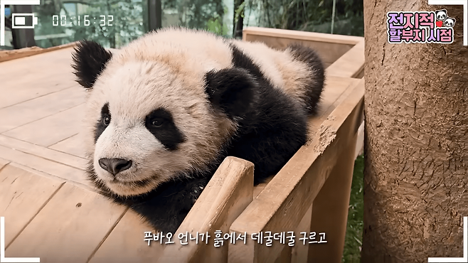 "루이야. 푸바오 언니의 옛 생각이 나는구나. 푸바오 언니가 흙에서 데굴데굴 구르고, 이런 모습을 보일 때가 많이 있었거든? 역시 루이가 우리 푸바오 언니를 많이 닮았네요. 루이, 푸언니의 모습을 너를 통해 보는구나"