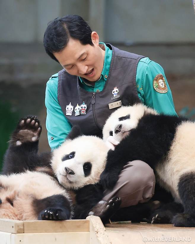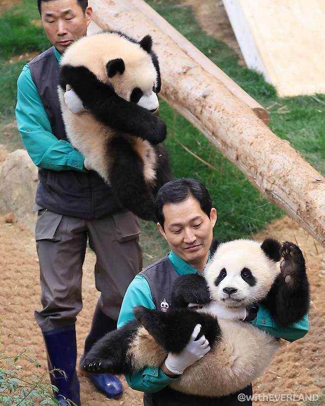 자라나는 쌍둥이 동생들을 보고 푸바오를 떠올리는 사육사 할아버지들의 모습에 많은 사람들이 공감하고 있습니다..
