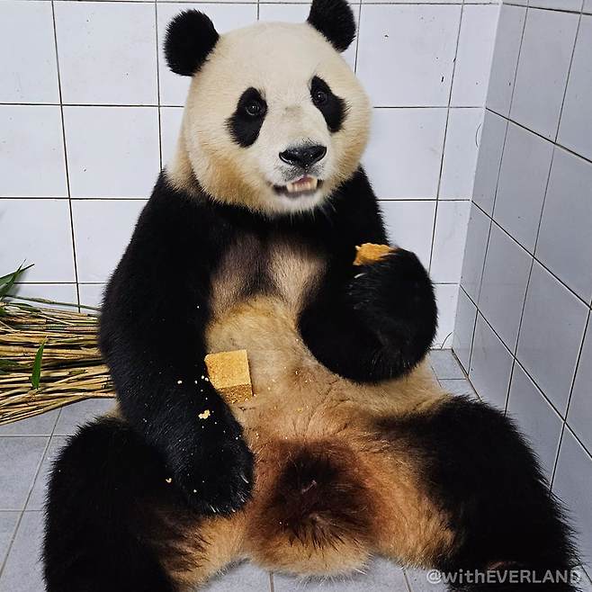 그렇게 루이바오가 있는 곳에 도착한 강바오 할아버지는 꼬질꼬질해진 루이의 모습을 보고는 깜짝 놀라서 다정하게 말을 걸었는데요. 덤덤히 전한 이 말에 많은 팬들이 눈시울을 붉혔다고 합니다.